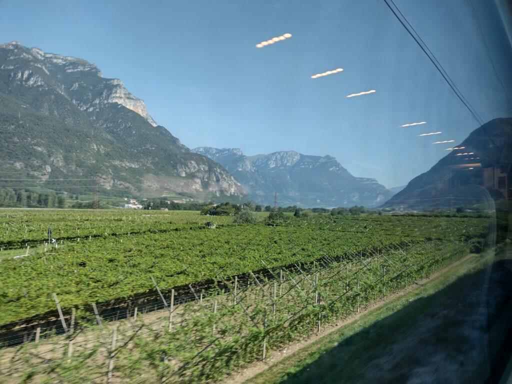Speeding through vineyards as the mountains get ever higher: All aboard the high speed train from Verona to Bolzano, and on to Brunico.